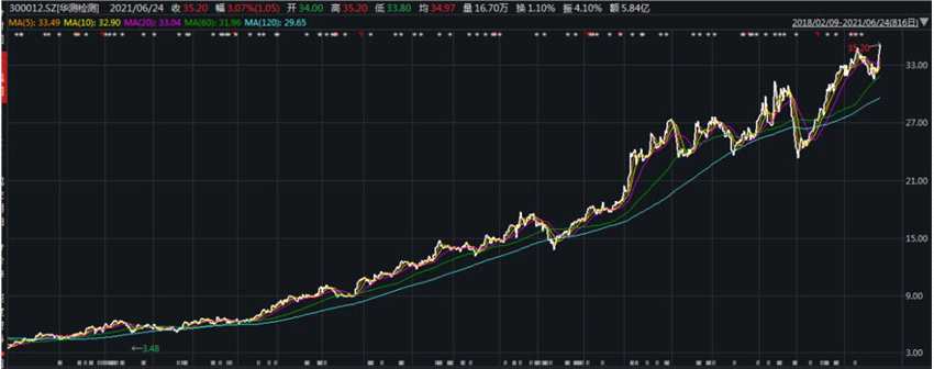 外資的持續(xù)買入,也使得華測(cè)檢測(cè)股價(jià)最近幾年呈現(xiàn)單邊上漲格局。