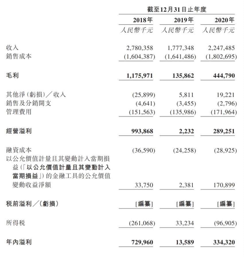 財務(wù)方面,寒銳鈷業(yè)的業(yè)務(wù)收入及凈利潤波動顯著。于2018年至2020年度,收入分別為27.8億元(人民幣,下同)、17.78億元、22.47億元;毛利率分別為42.3%、7.6%、19.8%;凈利潤分別為7.3億元、1358.9萬元、3.34億元。
