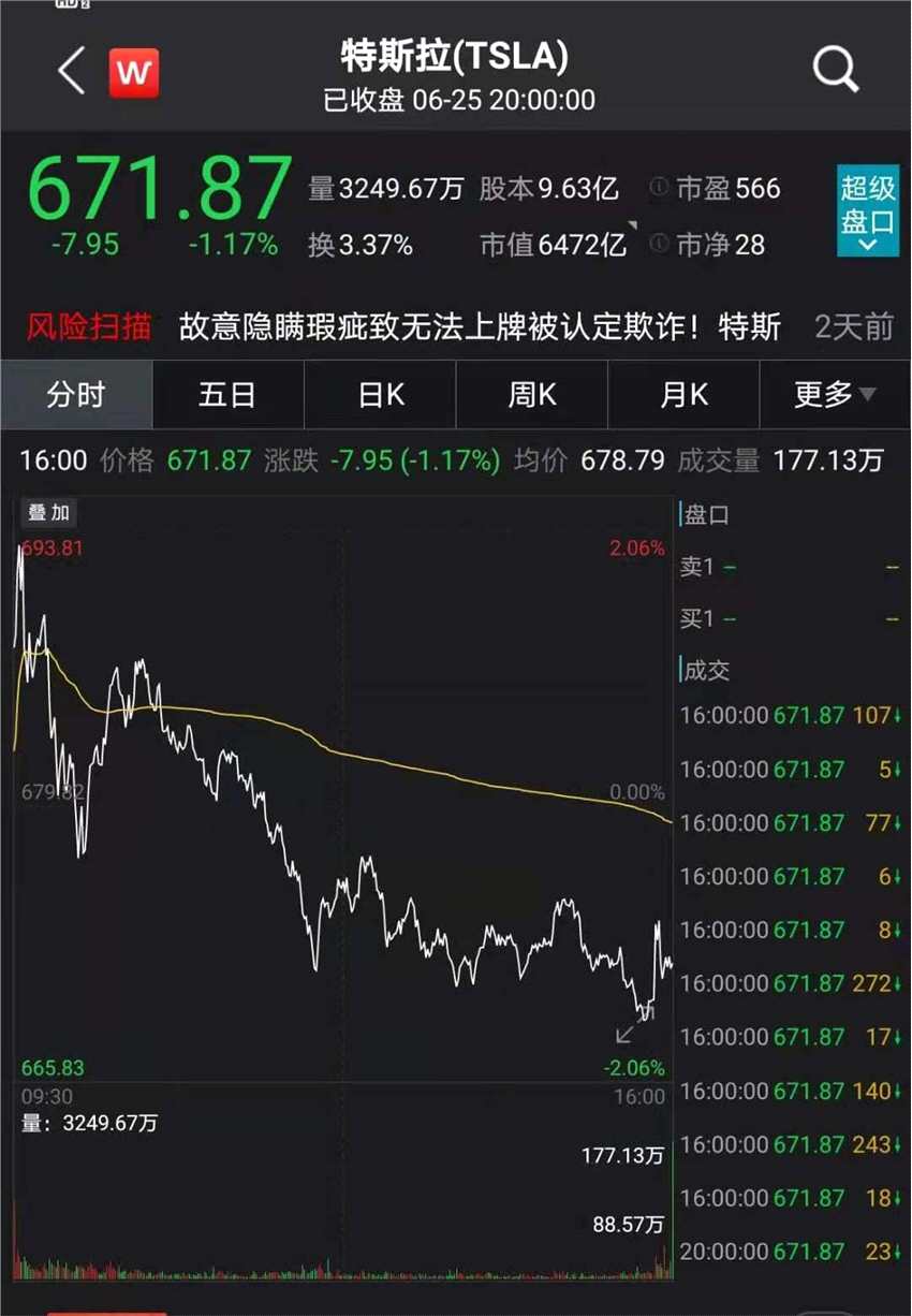 受此消息影響,6月25日特斯拉股價(jià)承壓,全天震蕩下跌,收盤跌1.17%。