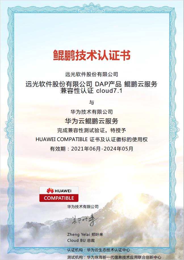 遠(yuǎn)光達(dá)普(YG-DAP)獲華為鯤鵬雙重兼容性技術(shù)認(rèn)證