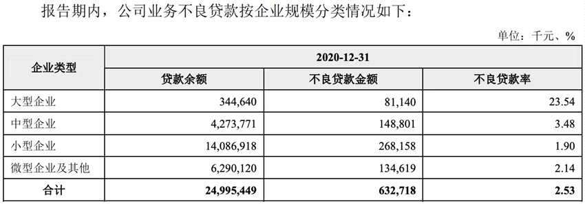 另外,中型企業(yè)不良貸款率也在近3年內(nèi)波動(dòng)抬升,截至2018-2020年末分別為1.65%、0.63%、3.48%。