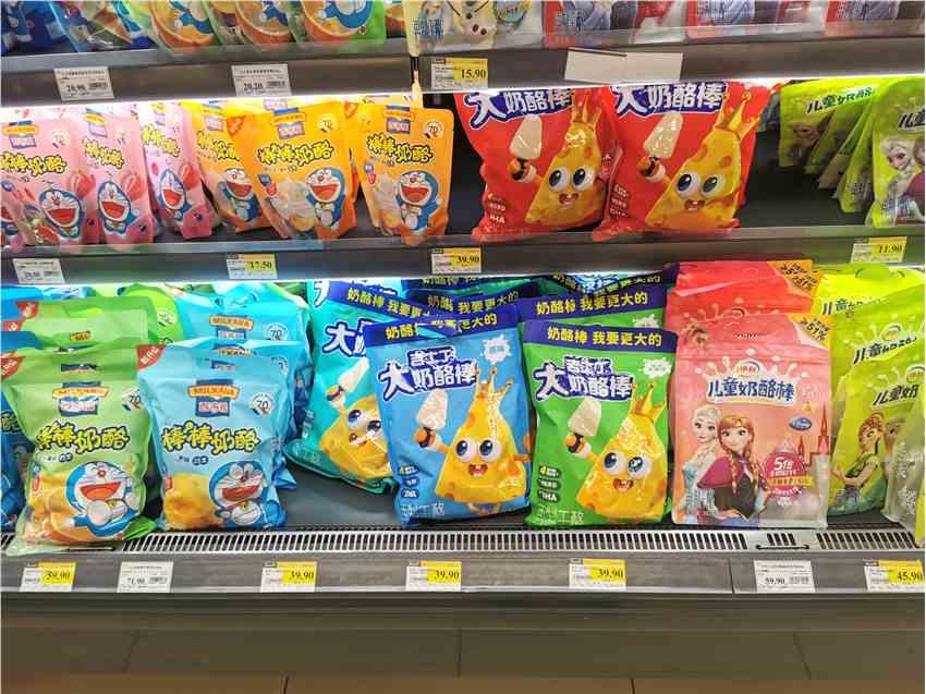 互聯(lián)網(wǎng)記者近日走訪北京BHG超市、永輝超市(601933)發(fā)現(xiàn),今年兒童奶酪零食品牌在妙可藍多、百吉福、伊利、愛氏晨曦、妙飛、樂芝牛等品牌基礎(chǔ)上,又多了奶酪博士、吉士丁、和潤等品牌,永輝自有品牌“饞大師”也推出了兒童奶酪棒產(chǎn)品。在線上,則可以找到熊貓乳品、均瑤健康、菲仕蘭等奶酪棒品牌。