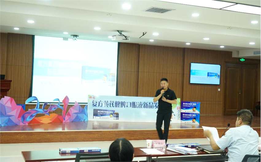 發(fā)布會伊始,由段文博老師為各位參會人員詳細講解了公司獨家產(chǎn)品―復(fù)方黃芪健脾口服液的產(chǎn)品概述、功能主治、產(chǎn)品優(yōu)勢,同時給出了大量數(shù)據(jù)以及實驗進行論證。精彩的講解豐富了與會人員的產(chǎn)品知識,讓大家對復(fù)方黃芪健脾口服液這一獨家產(chǎn)品的市場前景更加充滿信心。