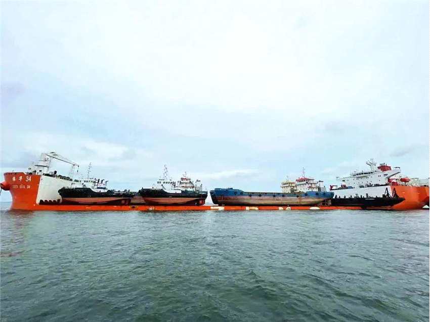 7月4日,“振華34”輪在新加坡成功浮裝7艘工程船。