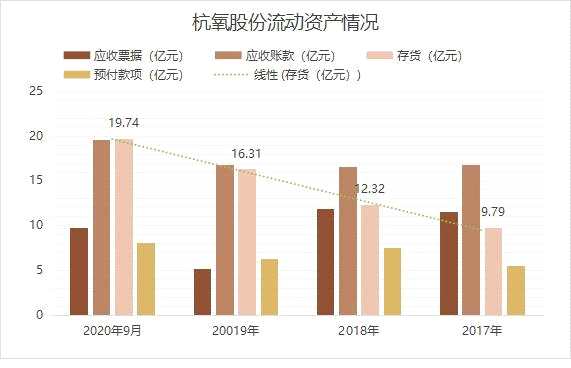 關(guān)于財務(wù)流動資產(chǎn),證監(jiān)會注意到杭氧股份報告期各期末應(yīng)收賬款和應(yīng)收票據(jù)余額較高,部分應(yīng)收賬款賬齡較長;各期末存貨余額較高且增長較快;同時預(yù)付賬款余額也較高。