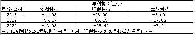 在凈利潤(rùn)的對(duì)比上,曠視科技虧損明顯高于依圖科技和云從科技。