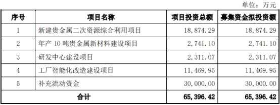 浩通科技最終募集資金凈額比原計(jì)劃少1.83億元。浩通科技7月12日披露的招股書顯示,公司擬募集資金6.54億元,分別用于新建貴金屬二次資源綜合利用項(xiàng)目、年產(chǎn)10噸貴金屬新材料建設(shè)項(xiàng)目、研發(fā)中心建設(shè)項(xiàng)目、工廠智能化改造建設(shè)項(xiàng)目、補(bǔ)充流動資金。