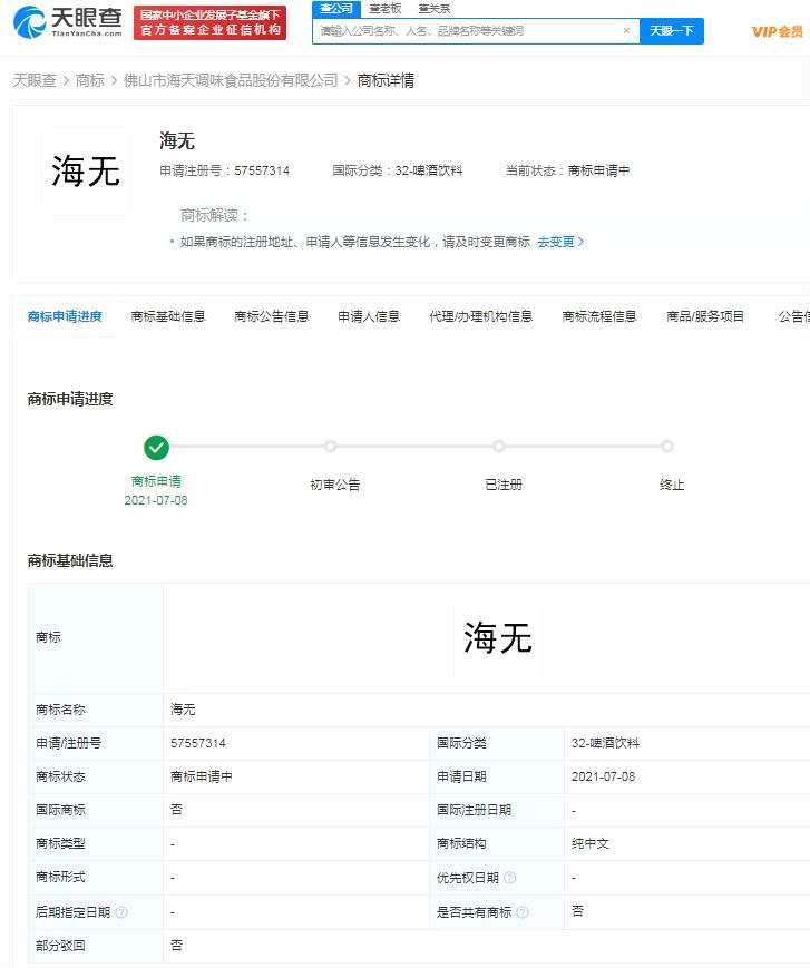 海天申請注冊每天商標 網(wǎng)友:咋沒申請海夫