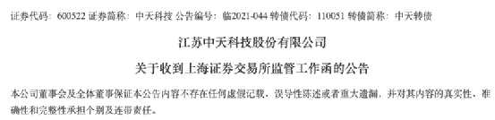 上交所提出4條,要求中天科技督促公司妥善處置風(fēng)險事項、合規(guī)履行信息披露義務(wù)。