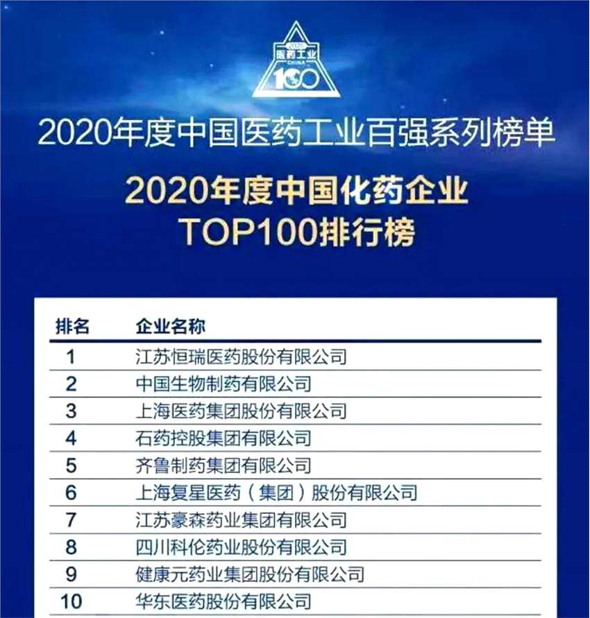2020年度中國醫(yī)藥工業(yè)百強系列榜單發(fā)布 金城醫(yī)藥榮登中國化藥企業(yè)TOP100第53位