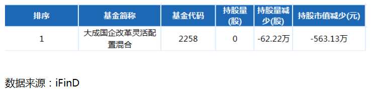 另外,相較上季度,二季度1只基金的欣賀股份倉(cāng)位減少或退出,按照倉(cāng)位減少量排名的基金明細(xì)數(shù)據(jù)如下表所示: