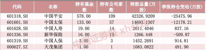數(shù)據(jù)顯示,截至中證君發(fā)稿,今年二季度末,基金對A股保險(xiǎn)持倉情況如下: