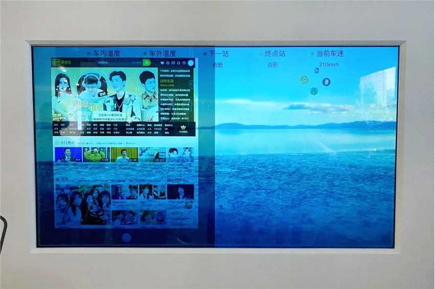 在高速磁懸浮列車上,京東方智慧視窗可以自動匹配車外光線,乘客通過視窗上的透明顯示按鍵,自主調(diào)節(jié)車窗亮度,實現(xiàn)整面或分區(qū)調(diào)光,滿足了人們出行觀景、休息等需求,營造了夢幻乘車新體驗,讓旅途生活充滿樂趣。