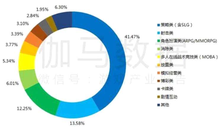 從游戲類型分布來看,出海移動(dòng)游戲中以策略類、射擊類、角色扮演類游戲最受歡迎。其中,策略類達(dá)41.47%,遙遙領(lǐng)先于其余類型。