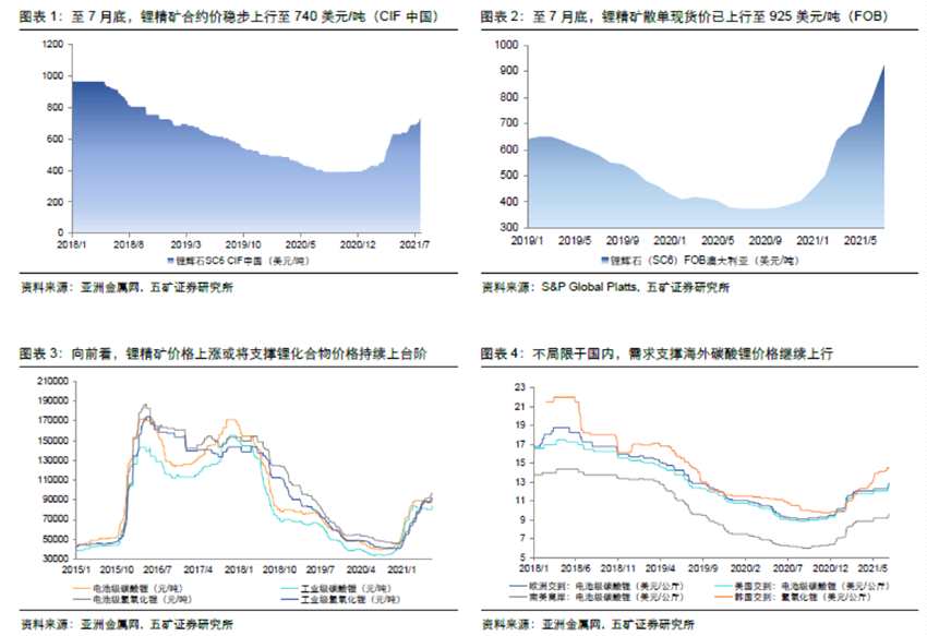 中信證券指出,銀河資源和Pilbara兩家澳洲獨(dú)立鋰精礦生產(chǎn)商均在7月進(jìn)行了首次鋰精礦競拍銷售,且成交價(jià)格遠(yuǎn)高于現(xiàn)階段中國鋰鹽企業(yè)與其商定的包銷價(jià)格。隨著澳洲鋰精礦企業(yè)更多轉(zhuǎn)向現(xiàn)貨競價(jià)銷售,在供應(yīng)短缺的背景下,預(yù)計(jì)鋰精礦價(jià)格的上漲將更加劇烈。國內(nèi)依賴澳洲鋰礦原料生產(chǎn)的企業(yè)將面臨嚴(yán)峻的成本壓力,原材料價(jià)格的大幅上漲也將從從成本端迫使鋰鹽企業(yè)繼續(xù)抬價(jià),鋰價(jià)上漲空間再度拉闊。