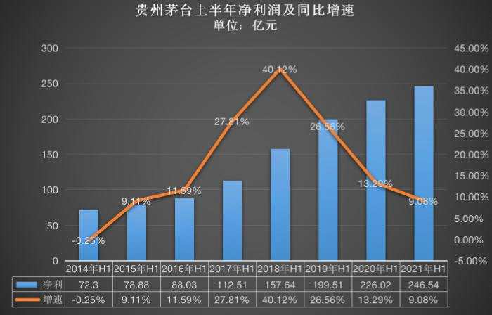 從數(shù)據(jù)對比可以看到,貴州茅臺上半年的凈利潤增速創(chuàng)2015年以來新低。