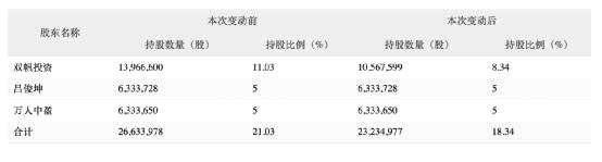 本次權(quán)益變動(dòng)后,雙帆投資持有公司1056.76萬(wàn)股股份,占上市公司總股本的8.34%,呂俊坤直接持有公司633.37萬(wàn)股股份,占上市公司總股本的5%;萬(wàn)人中盈持股占比5%。雙帆投資仍為公司控股股東,消失了二百多天的呂俊坤仍為公司的實(shí)際控制人。