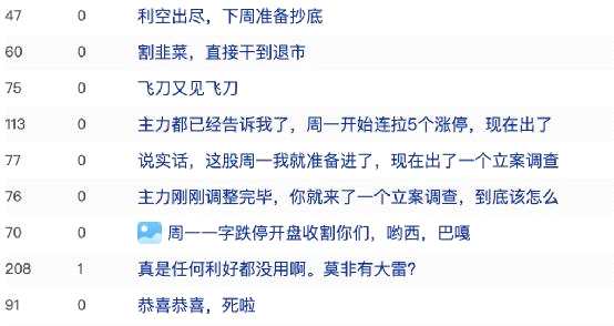 由于公司被證監(jiān)會(huì)立案調(diào)查,有投資者感嘆“飛刀又見(jiàn)飛刀”“任何利好都沒(méi)用啊,莫非有大雷?”