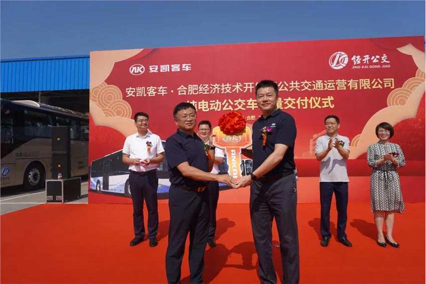 夏意盎然,合肥新能源公交也迎來了新氣象。7月30日,安凱客車(000868)與合肥經濟技術開發(fā)區(qū)公共交通運營有限公司(以下簡稱經開公交)34臺純電動公交車交付儀式在合肥舉行。