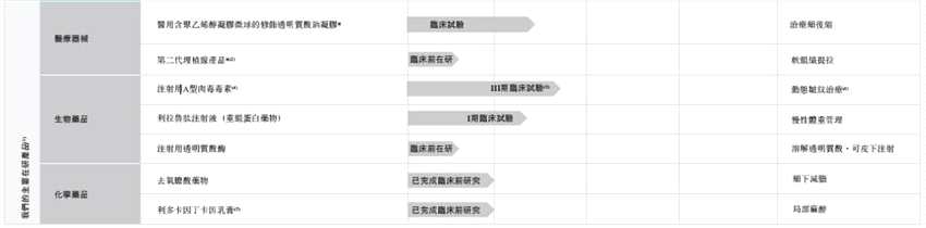 愛美客自身對此顯然亦有認(rèn)知,根據(jù)其招股書看,公司目前共有七款在研產(chǎn)品,布局方向包括應(yīng)用于去除動態(tài)皺紋的肉毒毒素、應(yīng)用于體重管理的利拉魯肽注射液、面部埋植線等,同時產(chǎn)品線從生物醫(yī)用材料向生物醫(yī)藥領(lǐng)域拓展。