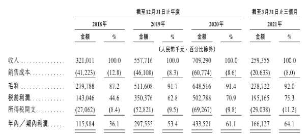 業(yè)績表現(xiàn)方面,2018年-2020年愛美客的收入分別達(dá)3.21億元、5.58億元、7.09億元,復(fù)合年增長率約為48.6%;凈利潤分別為1.16億元、2.98億元、4.34億元,復(fù)合年增長率約為93.3%??梢钥吹?,最近三年公司業(yè)績保持高速增長態(tài)勢,但收入規(guī)模相比于公司市值而言相去甚遠(yuǎn)。