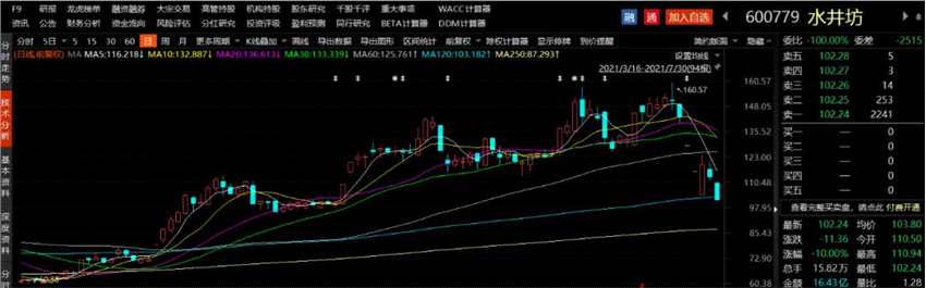 自宣布涉足醬酒后,水井坊(600779)股價(jià)節(jié)節(jié)攀高,3個(gè)多月時(shí)間直接翻番。然而最近5個(gè)交易日,水井坊4個(gè)交易日大跌,其中3個(gè)交易日跌停。