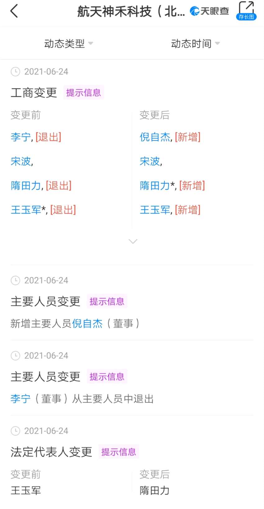 根據(jù)工商信息,今年6月24日,公司法定代表人由王玉軍變更為隋田力。