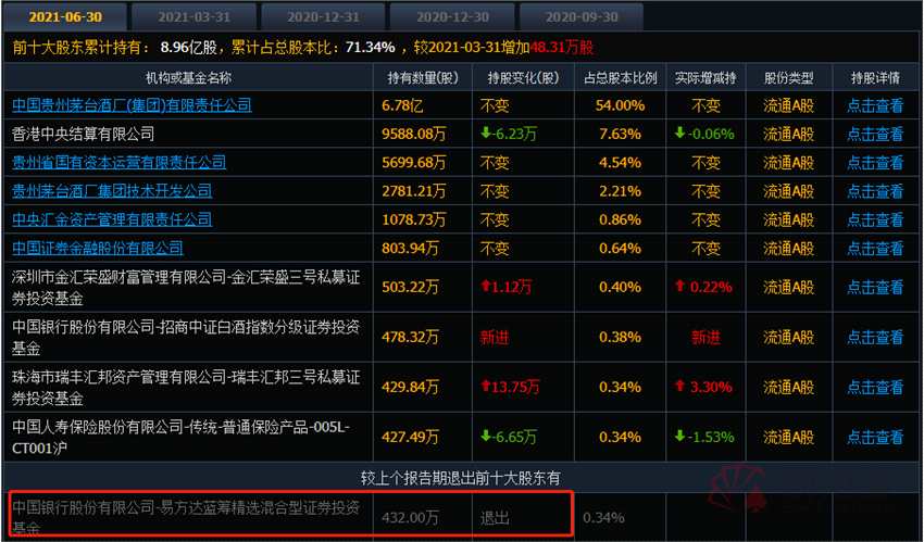 不過(guò),另?yè)?jù)易方達(dá)藍(lán)籌精選二季報(bào)顯示,該基金截至二季度末,尚持有貴州茅臺(tái)426萬(wàn)股,只比一季度略有減持。