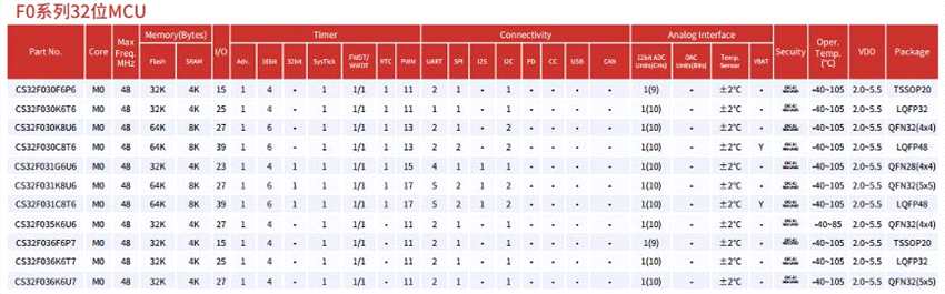 芯海目前主要MCU產(chǎn)品