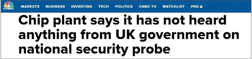 ?。ㄓ^察者網(wǎng)訊)中企對英國最大芯片生產(chǎn)商Newport Wafer Fab(簡稱“NWF”)的收購一直廣受關(guān)注,盡管英國首相約翰遜此前提出對此案進行“安全審查”,但一個月過去了,英國政府卻一點兒動靜也沒有。