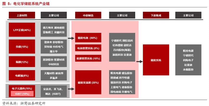 電池與逆變器環(huán)節(jié)系統(tǒng)成本占比最高,分別為60%和20%,是產(chǎn)業(yè)鏈中高景氣度方向,相關(guān)企業(yè)有望充分受益行業(yè)紅利。從彈性測(cè)算結(jié)果看,逆變器環(huán)節(jié)彈性相比鋰電池更大。浙商證券建議關(guān)注寧德時(shí)代(300750)(電池技術(shù)優(yōu)勢(shì)+超前布局)、陽光電源(300274)(電力電子與系統(tǒng)集成能力)、派能科技(純正戶用儲(chǔ)能標(biāo)的)、錦浪科技(300763)(儲(chǔ)能逆變器開始放量)、【固德威(688390)、股吧】(儲(chǔ)能系統(tǒng)收入彈性大)和億緯鋰能(300014)(多元儲(chǔ)能業(yè)務(wù)快速發(fā)展)。