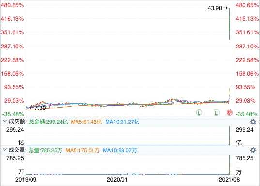 8月10日,鹽湖股份開盤即爆漲388.12%,僅1分鐘就觸發(fā)了臨時停牌,以43.15元/股的股價計算,總市值高達(dá)2344.29億元,即使之后打開漲停,截至收盤股價報收35.9元,1950.4億元的總市值也已經(jīng)達(dá)到,在開盤瞬間就超過了之前中金公司、中信證券、銀河證券等券商的預(yù)測估值。