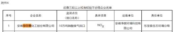 安徽省池州市生態(tài)環(huán)境局2021年7月26日的公告顯示,為強化污染源自動監(jiān)控設施的日常監(jiān)管,嚴厲打擊污染源自動監(jiān)控設施現(xiàn)場端弄虛作假行為。安徽省生態(tài)環(huán)境廳召開了全省2021年運維監(jiān)管季度總結(jié)匯報會,會上指出了池州市污染源自動監(jiān)控中存在諸多問題。其中,華爾泰便屬于巡查三輪以上校準校驗不合格企業(yè),檢測點位為10萬噸硝酸廢氣排口,具體項目為NOx(氮氧化物)。