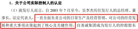 申報稿顯示,吳李杰自2003年7月至今,一直全面負責華爾泰的日常生產(chǎn)及經(jīng)營管理,對華爾泰的經(jīng)營發(fā)展和重大事項決策起到了核心及關鍵作用。這段話中“一直”、“全面”、“核心”、“關鍵”等詞,映射出吳李杰對華爾泰的掌握能力。