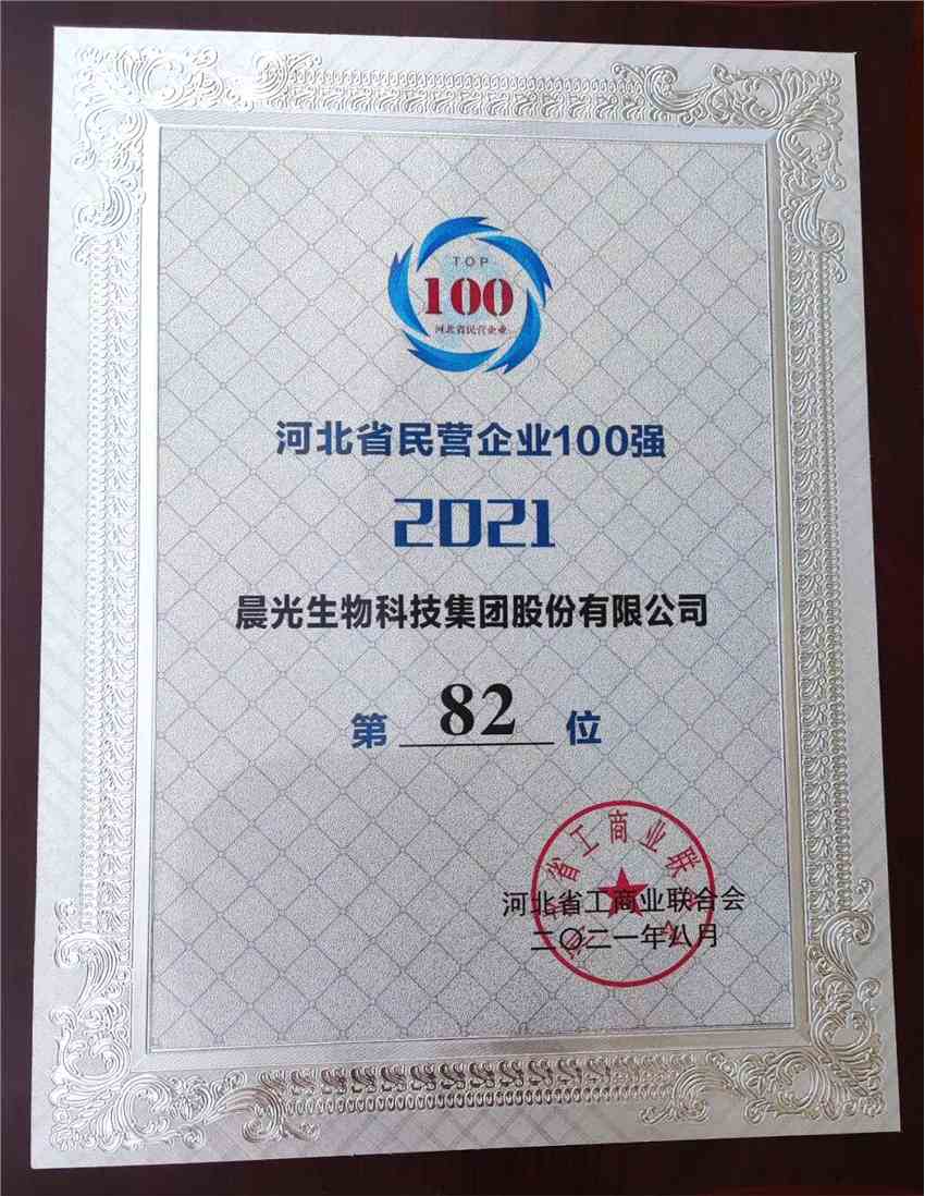 晨光生物入榜2021省民營100強企業(yè)