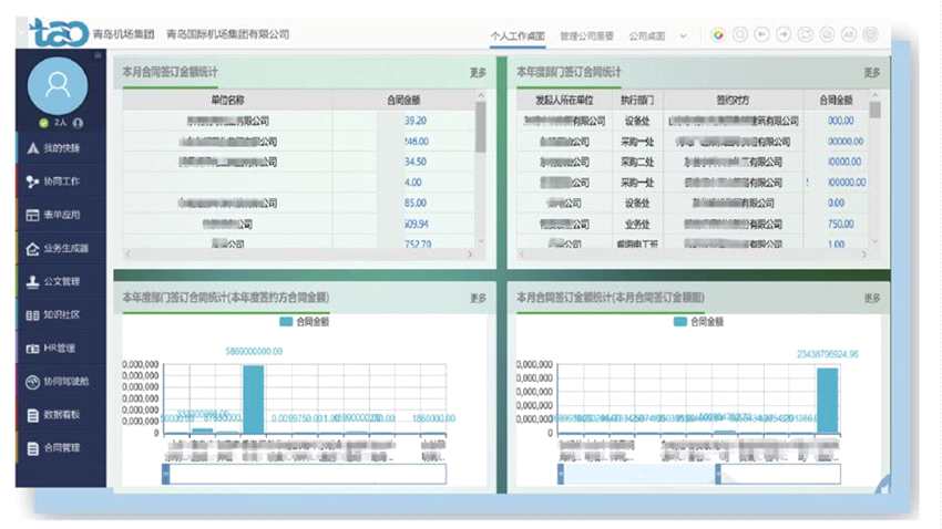 基于CAP 應(yīng)用定制平臺,青島機場集團(tuán)實現(xiàn)從前端豐富合同審批內(nèi)容的完善性、合同審批完成后合同檔案的存檔管理,到最終合同執(zhí)行階段的應(yīng)付/應(yīng)收提醒及信息一體化維護(hù),以合同管理為中心,按照集團(tuán)管理要求建立了合規(guī)、可控的整體系統(tǒng)管控能力。