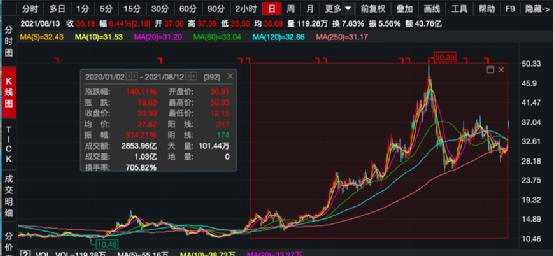 去年初,龍佰集團股價從每股14元一路上攻,最高至50元/股,之后出現(xiàn)回調(diào),一年半多來,股價已經(jīng)累計漲超140%。