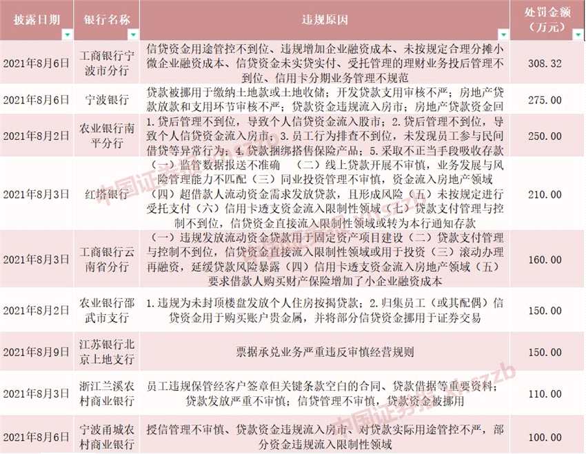 中證君注意到,除工商銀行寧波分行收到大額罰單外,寧波銀行(002142)、農(nóng)業(yè)銀行(601288)、紅塔銀行、江蘇銀行(600919)、浙江蘭溪農(nóng)商行、寧波甬城農(nóng)商行等銀行也被開出百萬級(jí)罰單。