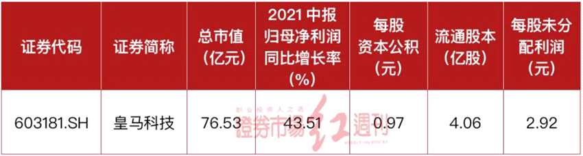 表2 皇馬科技2021年中報(bào)數(shù)據(jù)