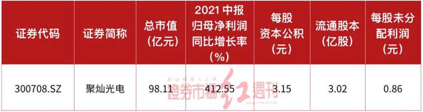 表3 聚燦光電2021年中報(bào)數(shù)據(jù)