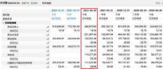 摘要: 財經(jīng)網(wǎng)產(chǎn)經(jīng)訊8月20日晚間,片仔癀(600436)發(fā)布2021年半年度業(yè)績報告,報告期間內(nèi),公司實現(xiàn)營業(yè)收入為38.49億元,同比增長18.56%;凈利潤11.15億元,