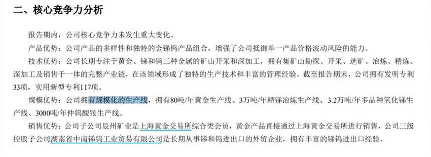 湖南黃金2021年半年報(bào)顯示:公司擁有3萬(wàn)噸/年精銻冶煉生產(chǎn)線、3.2萬(wàn)噸/年多品種氧化銻生產(chǎn)線。上半年,公司共生產(chǎn)銻品18872噸,同比增長(zhǎng)10.36%。