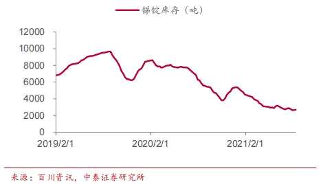 中泰證券稱(chēng),受環(huán)保等因素限制,近年來(lái),全球銻礦產(chǎn)量維持在13萬(wàn)噸5萬(wàn)噸之間,增速未見(jiàn)明顯擴(kuò)張,國(guó)內(nèi)方面同樣受到銻礦開(kāi)采總量指標(biāo)控制等限制。但在下游應(yīng)用拉動(dòng)下,近年來(lái)的庫(kù)存持續(xù)下降。