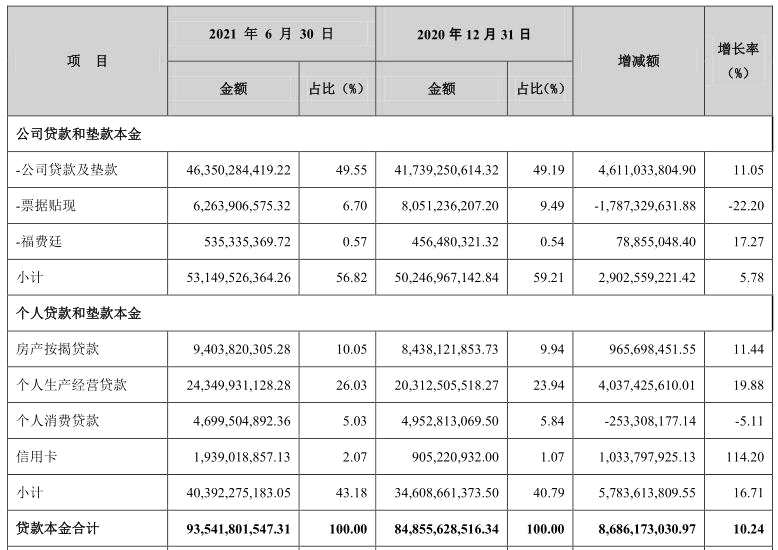 據(jù)財(cái)報(bào)介紹,截至2021年6月末,張家港行發(fā)放貸款及墊款總額898.96億元,較上年末增長(zhǎng)9.66%。其中,個(gè)人貸款余額 381.68 億元,較年初增幅 16.89%,占各項(xiàng)貸款比例 42.05%,較年初提高2.47個(gè)百分點(diǎn)。