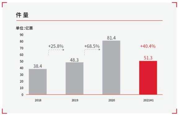 按單季度看,其二季度實(shí)現(xiàn)營收457億元,凈利潤17.49億元,環(huán)比大幅改善。具體業(yè)務(wù)方面,上半年公司實(shí)現(xiàn)速運(yùn)物流業(yè)務(wù)量51.3億票,同比增長40.4%,兩年平均增長59.5%,高于行業(yè)的兩年平均33.4%的增速。不過票均收入15.94元,則較上年同期18.39元的水平下降了13.32%。公司快運(yùn)分部虧損總額為5.08億元,主要為公司推進(jìn)四網(wǎng)融通、 加速快運(yùn)網(wǎng)絡(luò)建設(shè)、加密干支線運(yùn)力以提升陸運(yùn)時(shí)效所致。