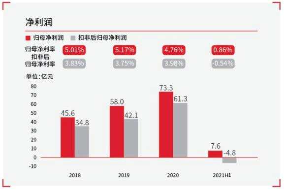 隨著半年報(bào)公布,公司如期扭虧,凈利潤額則落在業(yè)績預(yù)告的中位數(shù)左右。中報(bào)顯示,公司上半年實(shí)現(xiàn)營收883.4億元,同比增長24.2%,歸屬凈利潤7.6億元,同比下降79.8%,扣非后仍虧損4.77億元。非經(jīng)常性損益主要來自于向順豐房托基金處置子公司產(chǎn)生的收益,以及政府補(bǔ)助。