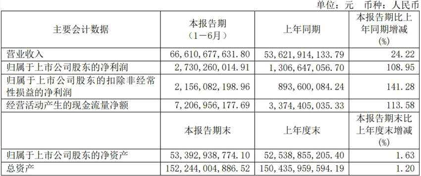 8月25日盤(pán)后,華域汽車(chē)(600741)披露了2021年半年度報(bào)告:上半年實(shí)現(xiàn)營(yíng)業(yè)收入666.11億元,同比增長(zhǎng)24.22%;歸屬于上市公司股東的凈利潤(rùn)27.3億元,同比增長(zhǎng)108.95%;歸屬于上市公司股東的扣除非經(jīng)常性損益的凈利潤(rùn)21.56億元,同比增長(zhǎng)141.28%?;久抗墒找鏋?.866元/股。