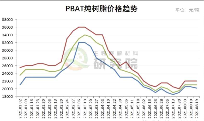 安徽一位從事下游塑料包裝生產(chǎn)的企業(yè)主洪濤告訴記者,今年3月,PBAT市場價格一度超過3.5萬元/噸。但很快價格便出現(xiàn)回落,到5月份,價格大約降到2萬元上下。另據(jù)生物降解研究院統(tǒng)計數(shù)據(jù)顯示,目前,PBAT市場平均價格約在2.2萬元。
