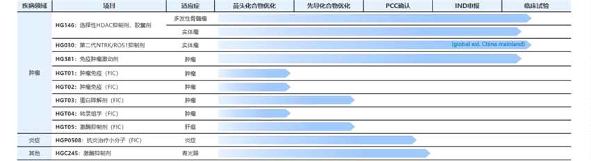 圖2:自主研發(fā)新藥項(xiàng)目進(jìn)展(數(shù)個(gè)早期項(xiàng)目未展示于表中)