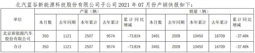 7月,北汽藍(lán)谷產(chǎn)銷量依然受挫,生產(chǎn)汽車350輛,銷出3491輛,產(chǎn)銷量差逐漸拉大。